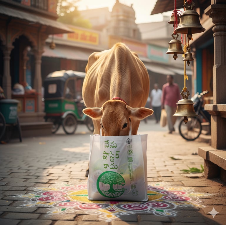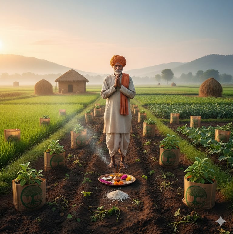 ECOLIMITS replaces plastic with compostable materials that return to the earth without harm. Just as we perform Bhumi Puja before building or farming, this act honors the soil as sacred and keeps it fertile for future generations
