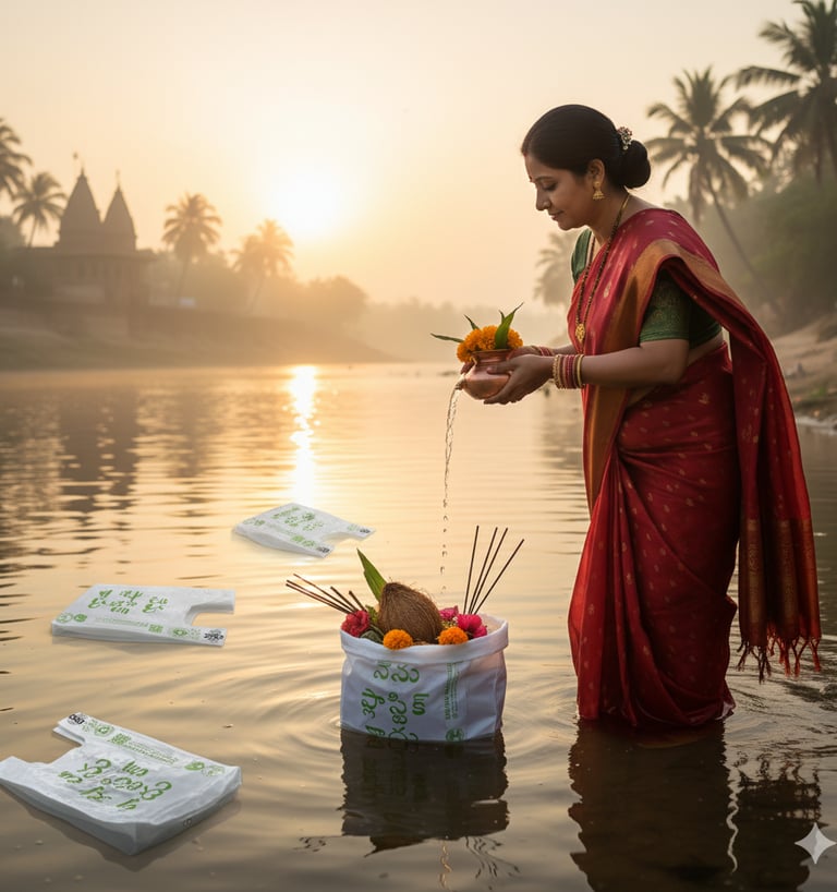 By eliminating plastic, ECOLIMITS prevents toxic runoff into lakes and rivers. In India, we offer Arghya to water bodies during rituals—this initiative is a living prayer to keep our jal tattva pure and life-giving.